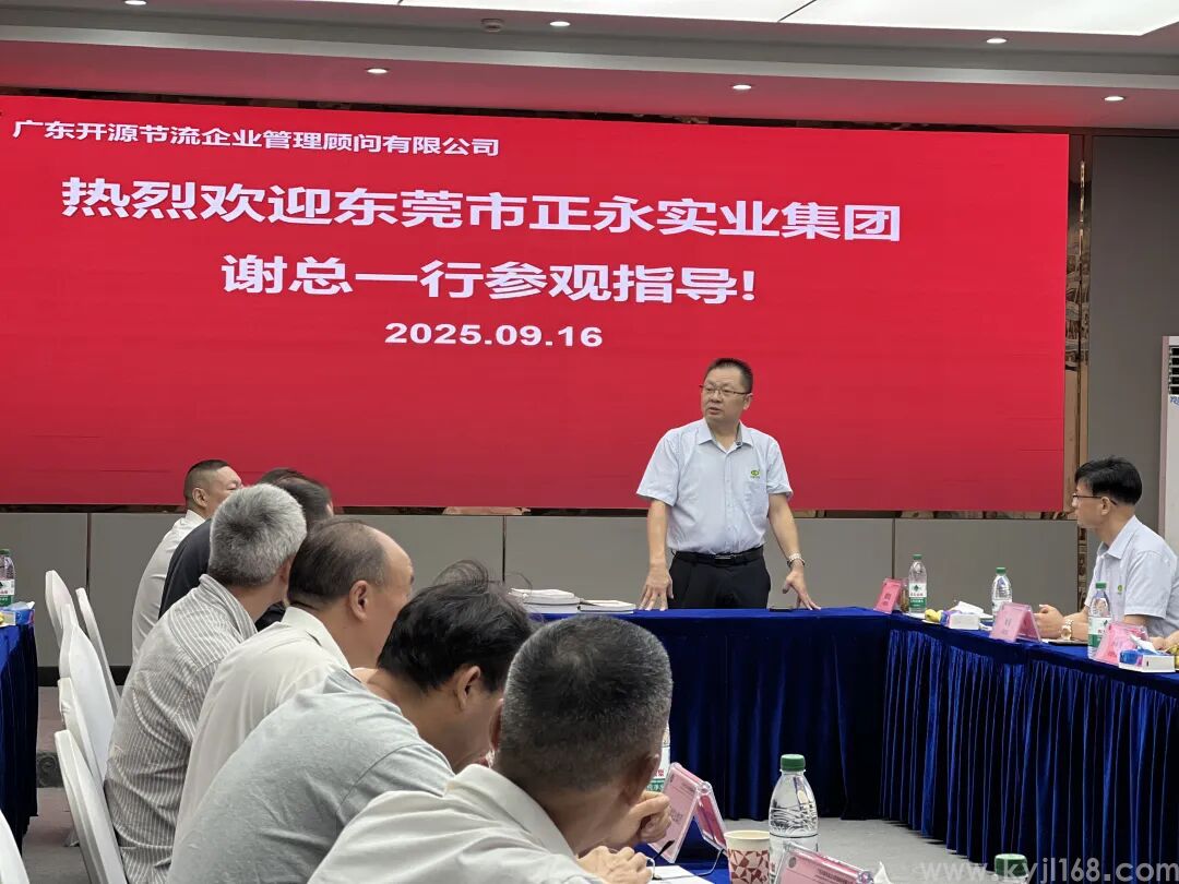 2025年9月16日,有朋自远方来,不亦乐乎!广东省重庆奉节商会会长/东莞市正永实业集团董事长谢总带领企业高管团队到开源节流公司学习交流,开源节流董事长程总作《