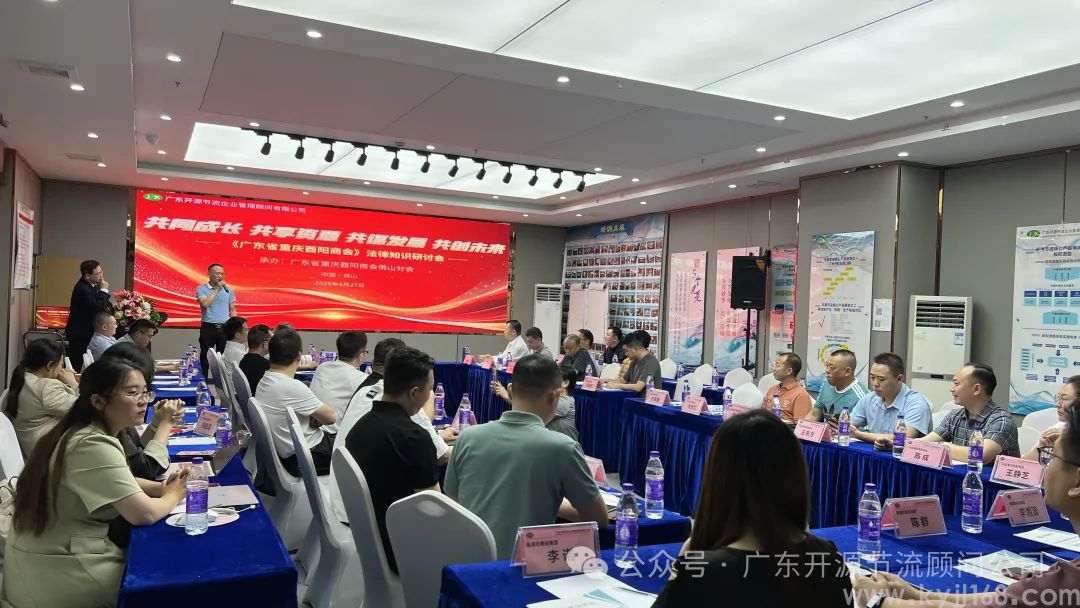 2025年4月27日,广东省重庆酉阳商会佛山分会法律研讨会在开源节流公司举行。